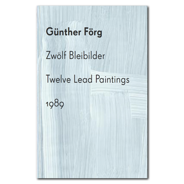 Erstmals zeigt diese Publikation zwölf großformatige Bleibilder von Günther Förg (je 240 x 160 cm) aus dem Jahr 1989. Die großen, ganzseitigen Reproduktionen mit je 31 x 21 cm vermitteln einen unmittelbaren, so bislang kaum erlangten Eindruck von der Wirkung, die die Originale erzeugen. Denn, so beschreibt es Max Wechsler in seinem Text, »der besondere Reiz der Bleibilder liegt nicht zuletzt natürlich in deren Materialität und der einzigartigen Stofflichkeit dieses doch eher ungewöhnlichen Malgrundes. Dazu kommt die spezielle Farbigkeit des Bleis, die, schillernd zwischen Grau und Blau changierend, wie eine dunkel drohende Gewitterballung mit ihren unendlichen Valeurs der Düsternis erscheint und ein feines Spiel mit den natürlichen und künstlichen Patinierungen eingeht. Dieser organisch wirkenden Oberfläche werden nun im malerischen Vortrag die gradlinig geometrischen Figurationen der Teilungen entgegengesetzt. Aus der subtilen Gegensätzlichkeit eröffnet sich ein Spannungsfeld, auf dessen Hintergrund die systematischen Kompositionsprogramme und die eher intuitiv entwickelten Untersuchungen der Farbverhältnisse mit höchster Konzentration zur Wirkung kommen. Das hat sicher auch damit zu tun, dass das Auftragen der Farbe auf Blei offenbar fast widerstandslos verläuft, was wiederum Förgs notorischem Hang zur Schnelligkeit schmeichelt. Ein Grund für dieses schnelle Gleiten liegt natürlich in der Tatsache, dass dieser Malgrund absolut nicht saugt und die Farbmaterie sich gleichsam auf der Oberfläche ablagert.« Die überwältigende Wirkung beschreibt die zweite Autorin des Bandes, Britta Schröder, denn auch als einen geschlossenen Kosmos: »Die Farbe drängt nicht in den Raum, sondern haftet an der Oberfläche wie an einem Magneten. Bei manch einem steht zu befürchten, dass er Teile der Malerei verschlucken wird, sobald man sie zu lange fixiert. Dafür stürzt man in Farbformen, deren Saugkraft einen aufnimmt, als fiele man kopfüber in ein Schwarzes Loch.«